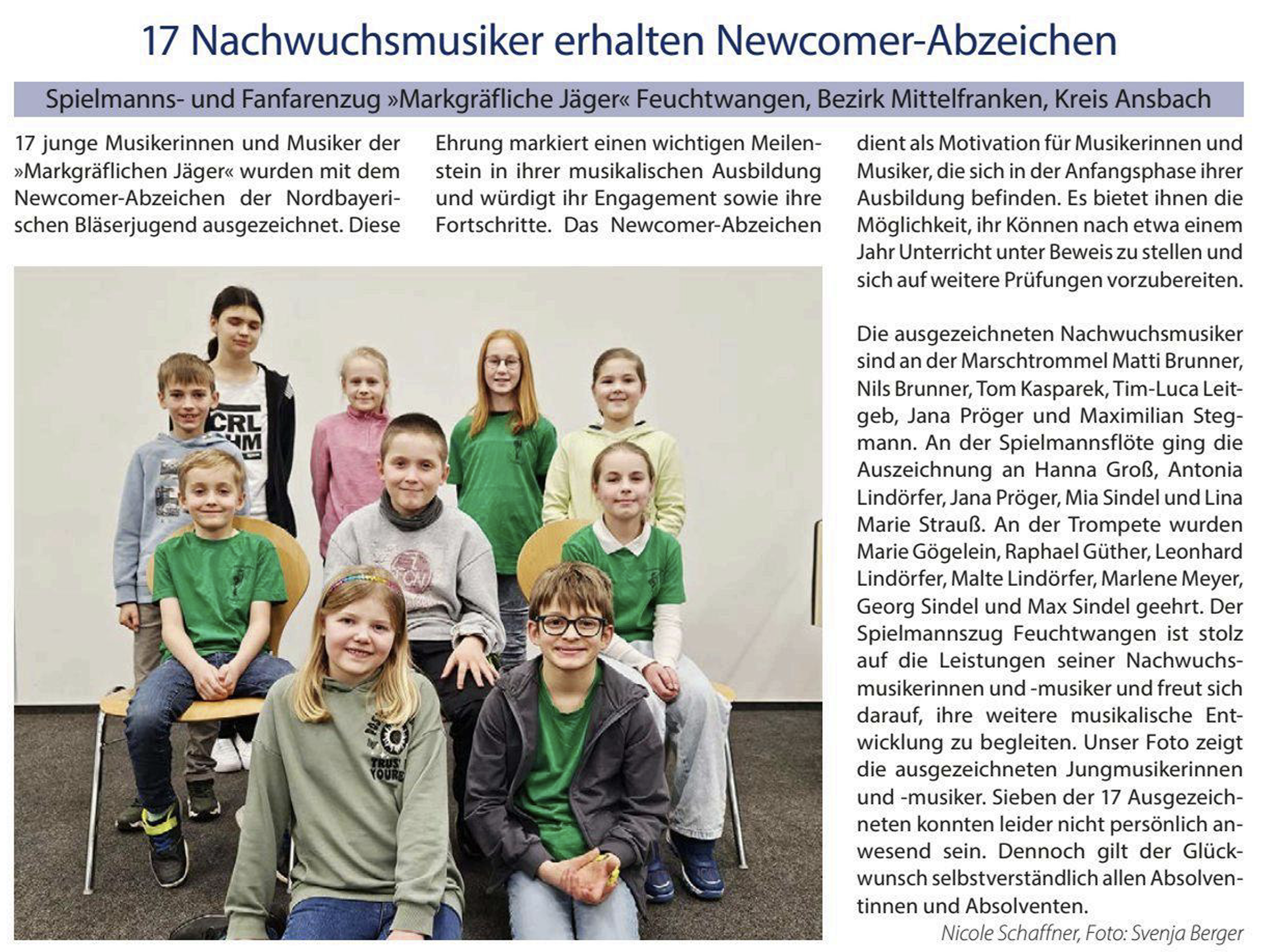 Bericht: 17 Nachwuchsmusiker erhalten Newcomer-Abzeichen